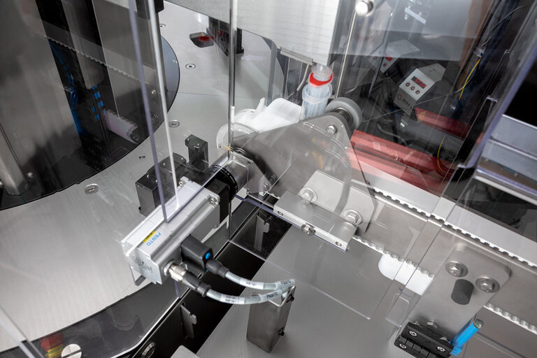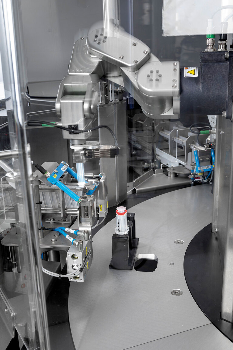 „Die Tatsache, dass sich die Plattform flexibel an Prozesse und Produkte anpassen lässt, beschert unseren Kunden oft ein Aha-Erlebnis“, betont Rob Thijssen. „Wir haben mittlerweile für einige Anwendungen Maschinen konzipiert, die sich im Einsatz bestens bewähren.“ Darunter zum Beispiel eine vollautomatische Montage- und Verpackungsmaschine für einen Hersteller von Spritzen: Für dieses Projekt hat GTE-engineering eine Doppelmaschine entwickelt und realisiert. Die erste Maschine bedruckt und montiert eine Doppelspritze. Die zweite Maschine verpackt die Spritze in einen Blister und versiegelt diesen mit einem Tyvek-Deckel. Für die Entwicklung dieser Maschinen wurde die LAP-C-Plattform verwendet, sodass die Maschine eine kleine Stellfläche hat und sehr flexibel ist. Durch den Einsatz von Dockingstations bleibt die Maschine zudem leicht zugänglich.
