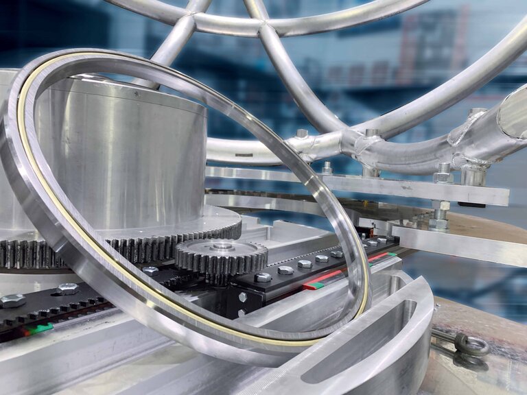Die Kaydon-Dünnringlager von Rodriguez spielen in der obersten Liga mit. Auch in diesem Einsatzbereich jenseits des Standards überzeugen sie mit kleinsten Toleranzen und höchster Genauigkeit, einer hohen Belastbarkeit und den kompakten Baumaßen. In der Illusion der Ehrlich Brothers werden zwei unterschiedliche Typen von REALI-SLIM® Dünnringlagern verbaut – Vierpunktlager und Schrägkugellager. Letztere sind für niedrige Drehmomente und sehr hohe Axialkräfte konzipiert und garantieren höchste Präzision. Vierpunktlager hingegen können radiale, axiale und Momentenlasten gleichzeitig aufnehmen – dies wird durch eine spezielle Geometrie des Schliffs der inneren und äußeren Laufbahn erreicht. Somit können diese Komponenten in vielen Anwendungen zwei Lager ersetzen. Das macht sie zu einem wahren Problemlöser gerade in Anwendungen mit wenig Bauraum. Eine weitere Erleichterung für den Konstrukteur stellt die Verfügbarkeit von metrischen Dünnringlagern dar, für die man sich auch im Falle der vorliegenden Illusion entschied. Weil nicht mehr in metrische Maße umgerechnet werden muss, reduziert sich der Aufwand bei den Wälzlager-Berechnungen.