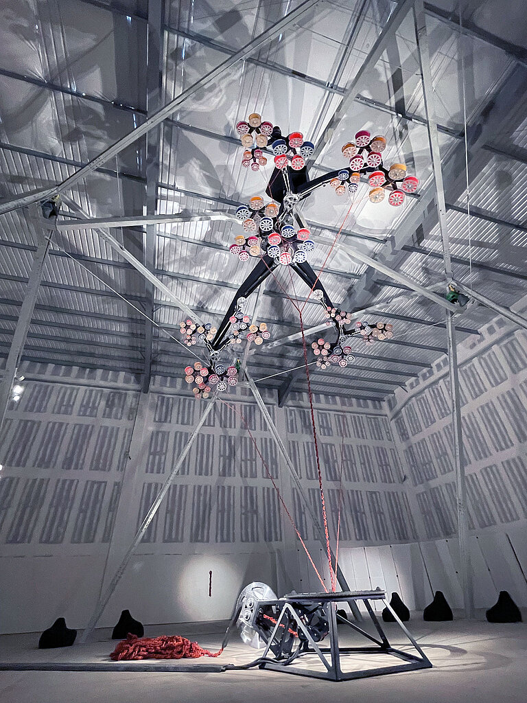 Lagertechnik arbeitet meist unsichtbar im Hintergrund. Im Fall der kinetischen Kunstinstallation UMBILICAL wird sie jedoch selbst zum sichtbaren Bestandteil des Werks. Für die großformatige Installation, in der riesige Garnrollen ein Seil in einer sich nie wiederholenden Abfolge flechten, lieferte die Rodriguez GmbH insgesamt 44 maßgeschneiderte Drehverbindungen in unterschiedlichen Größen.