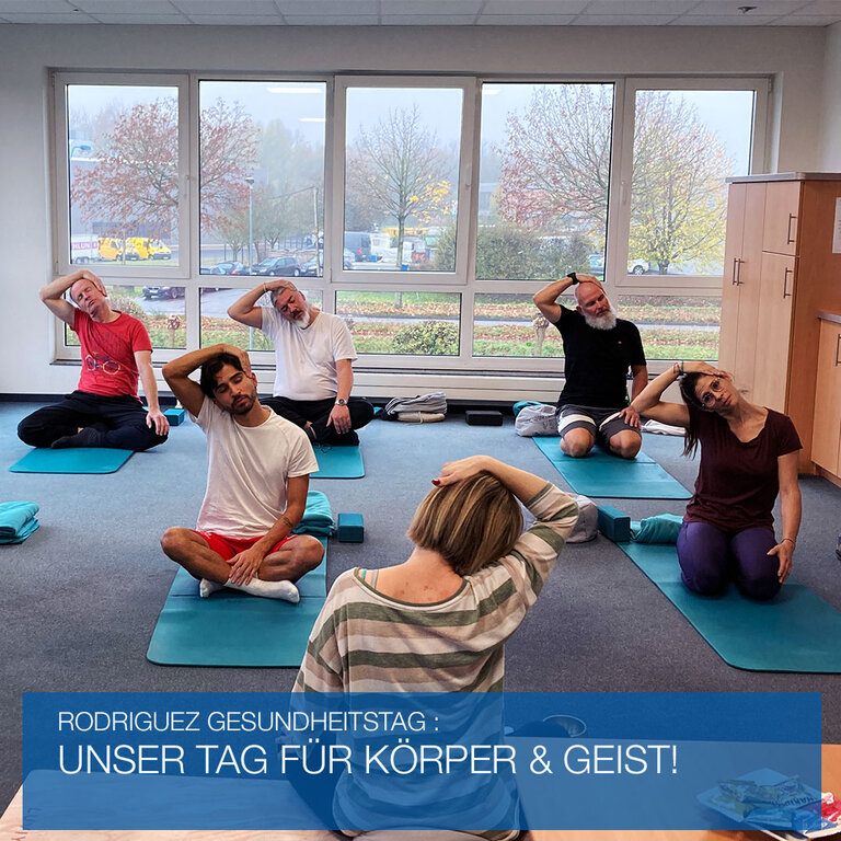 Für Bewegung sorgten Yoga-Übungen, die dabei helfen sollen, ein bisschen Ruhe und Entspannung in den hektischen Arbeitsalltag zu bringen und neue Kraft zu tanken. In der Mittagspause kümmerte sich Rodriguez um das leibliche Wohl mit einem gesunden Mittagessen, entspanntes Zusammensein inklusive.