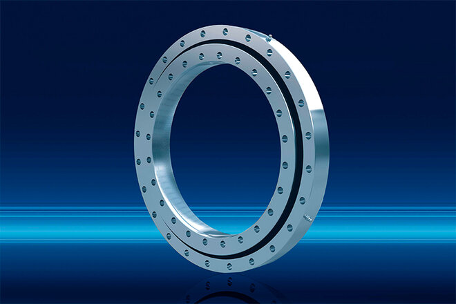 Die Antriebseinheit für eine Vakuumanwendung besteht aus einer innenverzahnten Edelstahl-Kugeldrehverbindung inklusive Montageplatte und…