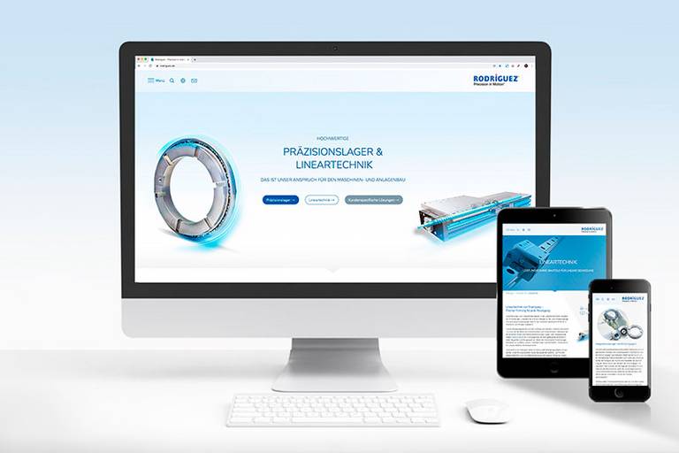 Das Sortiment von Rodriguez im Bereich der Präzisionslager und der Lineartechnik ist umfassend und vielfältig – umso wichtiger ist eine übersichtliche Online-Präsentation der Produkte. Deshalb wurden die Produktseiten im Rahmen des Website-Relaunches übersichtlicher strukturiert und einheitlich gestaltet. Über eine „Mediabar“ lassen sich schnell und einfach alle weiterführenden Informationen zu einem Produkt abrufen: zum Beispiel ein Katalog, ein Video oder die CAD-Daten. Neu hinzugekommen ist eine Unterseite zu den Kreuzrollenlagern, zudem können sich die Leser nun in den Bereichen Inhouse-Fertigung und Rundführungen auch über die kundenspezifische Endenbearbeitung informieren.