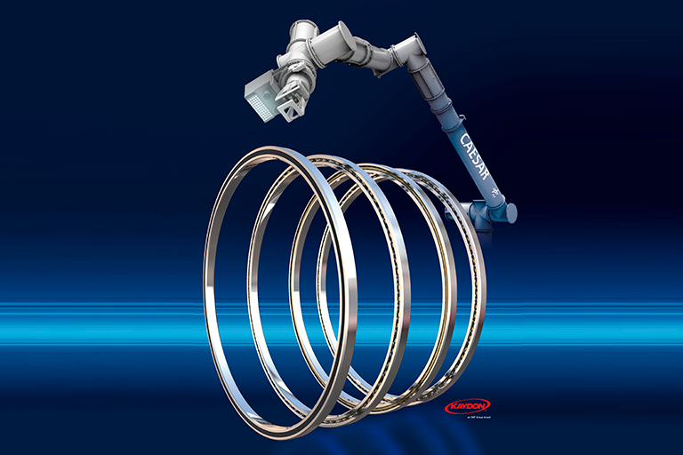 Rund 400 Kilometer über der Erde verrichten Dünnringlager von Rodriguez in einem Roboter auf der Außenseite an der Internationalen Raumstation ISS ihren Dienst. CAESAR (Compliant Assistance and Exploration SpAce Robot) – eine Entwicklung des Deutschen Zentrums für Luft- und Raumfahrt (DLR) – ist mit einem drei Meter langen Arm und sieben Gelenken ausgestattet, in denen Dünnringlager der REALI-SLIM-Serie verbaut sind. Ausgewählt wurden Dünnringschrägkugellager, die besonders effizient sowohl Radial- als auch Axialkräfte aufnehmen können und dabei besonders raumsparend sind. Im Rahmen des Vorgänger-Projekts ROKVISS (Robotic Components Verification on the ISS) war von 2005 bis 2010 schon einmal ein Roboter vom DLR an der ISS im Einsatz, in dessen Gelenken Kaydon-Dünnringschrägkugellager von Rodriguez erfolgreich für reibungslose Bewegungen sorgten.
