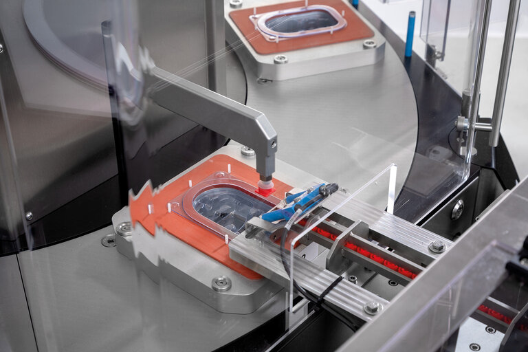 Die standardisierte Plattform LAP-C (Lean Automation Platform circular) hat GTE-engineering für die automatische Montage und Verpackung von medizinischen Produkten entwickelt. „Sie lässt sich flexibel an Prozesse und Produkte anpassen“, betont Rob Thijssen, Technical Director bei GTE-engineering. Ein Anwendungsbeispiel ist eine vollautomatische Montage- und Verpackungsmaschine für einen Hersteller von Spritzen: Bei der Konstruktion der LAP-C hatte GTE-engineering unterschiedliche Antriebsmöglichkeiten für die Maschine geprüft. Dabei waren vier Parameter relevant: die Genauigkeit, die Montagefähigkeit, der Geräuschpegel und nicht zuletzt der Preis. Im Vergleich schnitt eine Kugeldrehverbindung von Rodriguez am besten ab, die ein einfaches, aber solides Design ermöglicht. Innerhalb der LAP-C ermöglicht die Kugeldrehverbindung die Drehbewegung, die die Produkte des Kunden zu den verschiedenen Stationen transportiert.