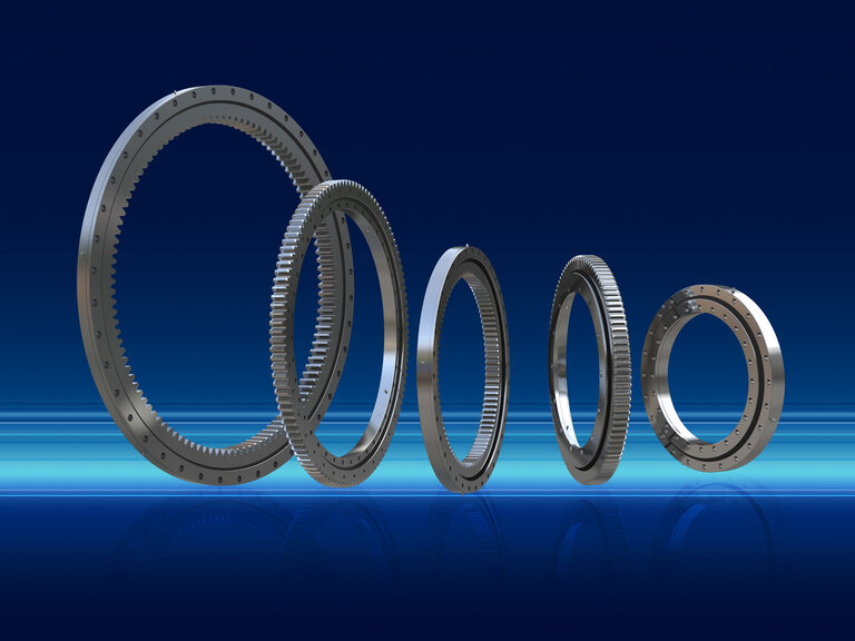 Die ungewöhnlichen Dimensionen von Baumaschinen stellen für die in den Maschinen verbauten Komponenten eine Herausforderung dar. Rodriguez kann mit einem umfangreichen Sortiment an Großwälzlagern helfen: Zum Lieferumfang des Eschweiler Unternehmens gehören Kugel- und Rollendrehverbindungen, Zahnkränze sowie kundenangepasste Lösungen mit integriertem Antrieb. Der Außendurchmesser der Lösungen kann bis zu 6.100 mm betragen.