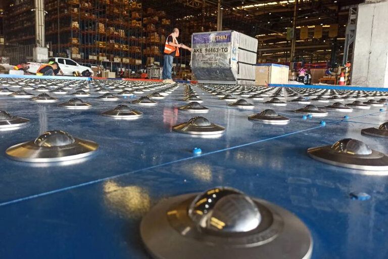 Am Suvarnabhumi International Airport setzt das Frachtunternehmen THAI Cargo auf Kugelrollen von Alwayse. Über sein 90.000 Quadratmeter großes Lager bewegt das Unternehmen über 1,2 Millionen Tonnen Güter jährlich. Die Effizienz des Güterumschlags wird entscheidend erhöht durch ein 135 Quadratmeter großes Kugeldeck. Darin gewährleisten über 1.600 Kugeln mit einem Durchmesser von je 57 Millimetern und einer Tragfähigkeit von mehr als einer Tonne das einfache und schnelle Handling von Unit Load Devices wie Containern oder Paletten.