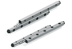 Die Kreuzrollenführungen können horizontal oder vertikal eingebaut werden. Bei paralleler Anordnung von zwei Schienenpaaren können diese Linearführungen einen Linearschlitten führen. Daraus ergeben sich neue Lösungsansätze vor allem für Lineartechnikanwendungen unter beengten Platzverhältnissen.